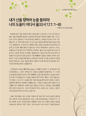 살펴보려고 합니다. 시편 기자는 ‘나의 도움이 어디서 올까?’ 이렇게 묻습니
